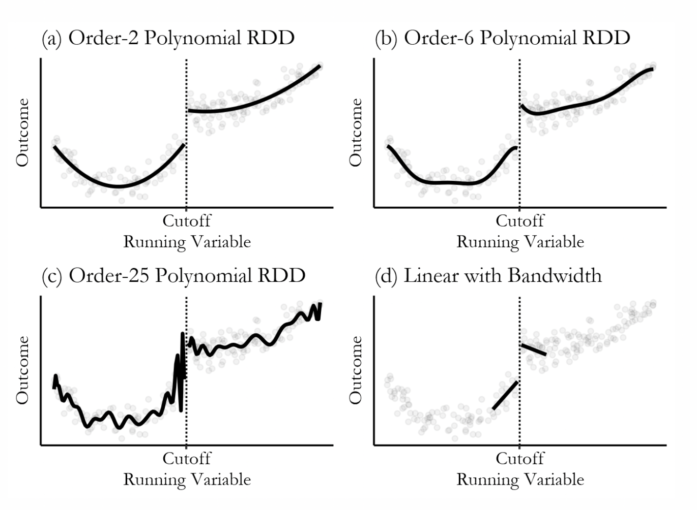 # generate running variable, treatment status, and errors